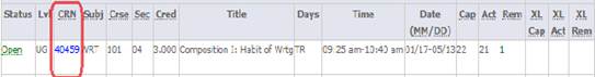Enter the 5-digit CRN found on Open/Close into the boxes at the bottom of your screen. Click submit changes.