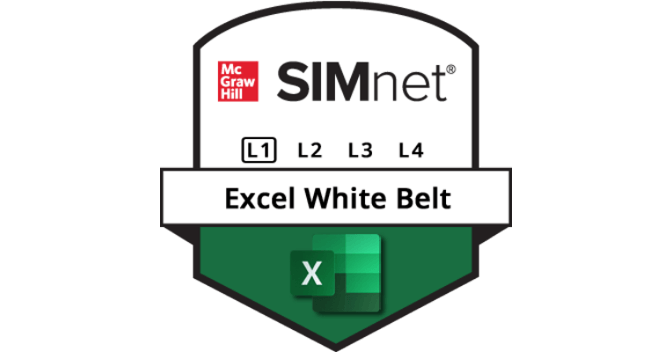 Upon completion of the course learners will earn a “White Belt” in Excel. This is a certification awarded to individuals who have demonstrated basic proficiency in Microsoft Excel. This certification is part of the McGraw-Hill SIMnet platform and is designed to validate the skills of learners in using Excel effectively. The White Belt credential is a stepping stone for those looking to advance their knowledge and skills in Excel, potentially leading to higher-level certifications like Yellow, Purple, and Black Belts. You can learn more or view examples of badges on SIMnet’s official badge page.